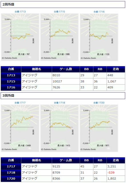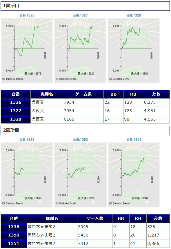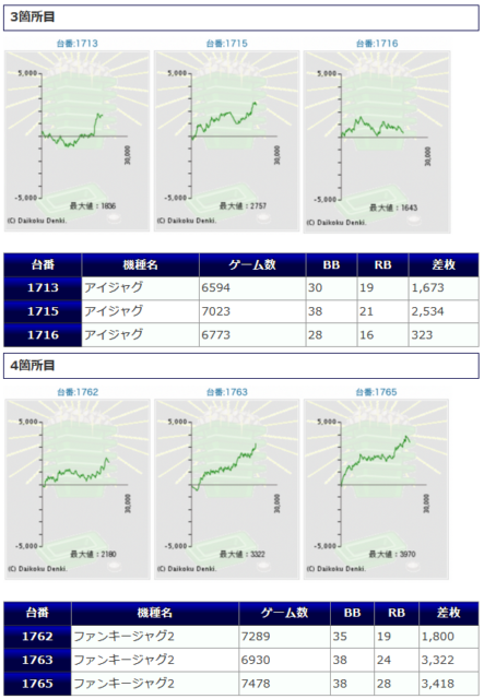 総じて状況は良好且つ、大きな差枚も多数確認されていますので、多くのユーザーが満足出来るような営業になっていたのではないでしょうか。