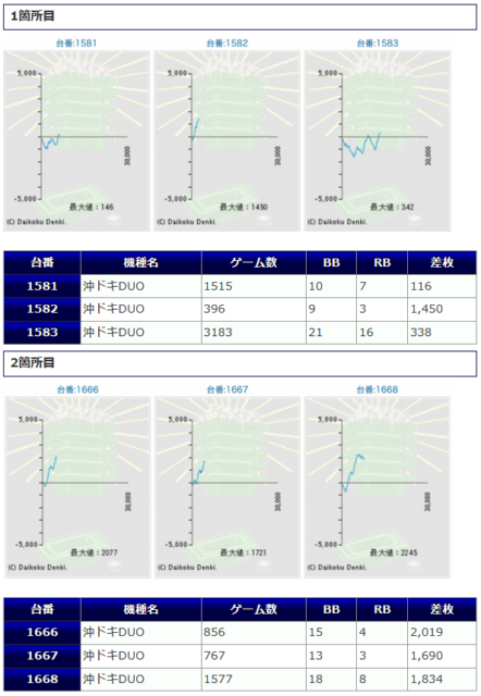 総じて状況は良好且つ、大きな差枚も多数確認されていますので、多くのユーザーが満足出来るような営業になっていたのではないでしょうか。