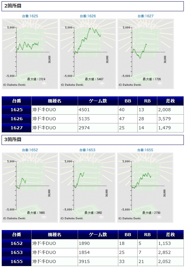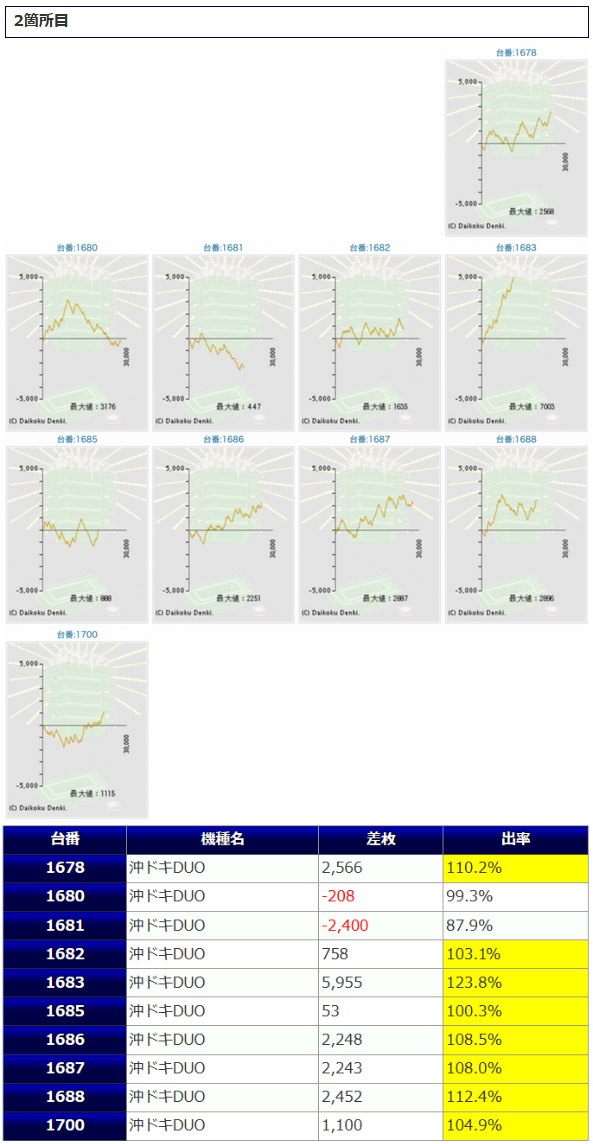 ②箇所目「沖ドキDUO」からも+約6,000枚が炸裂していますし、今回は沖スロ系が大活躍だったようですね。