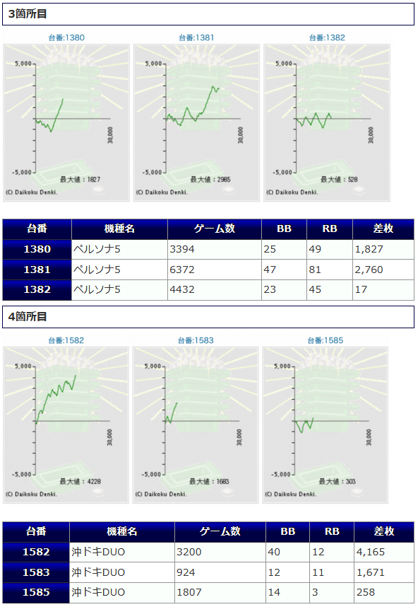 3箇所中、2箇所が3台並んでの差枚獲得でしたので、出玉感はあったと思われますし、並び系としても形になっていたように見受けられます。
