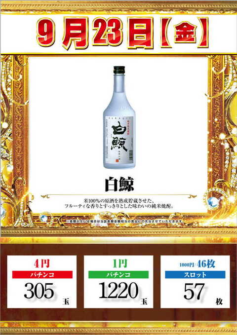 エミリア 誕生日にあわせて白鯨焼酎入荷。