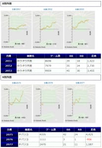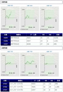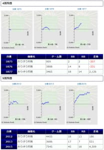 各箇所のスランプグラフを見てみますと「キレイな右肩上がり」が多数見られ、高配分だった事が窺えるかと思います。特に④箇所目「鳳凰天翔」のスランプグラフはキレイな物が多く、さすがは安定のノーマルタイプといった印象ですね。