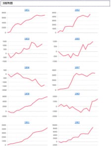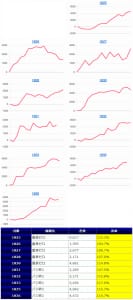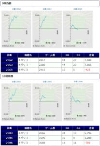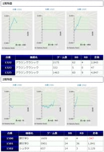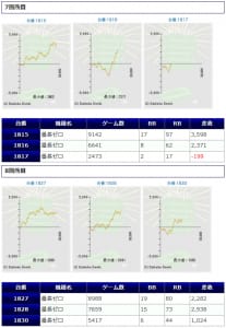 各箇所のスランプグラフを見てみますと「キレイな右肩上がり」が多数見られ、高配分だった事が窺えるかと思います。特に「絆2」のグラフはキレイな物が多いです。