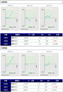 ②箇所目の沖ドキDUOは仕様上展開に左右されやすい機種となっていますが、勝率60%(6/10台)とこちらも充分優秀です。