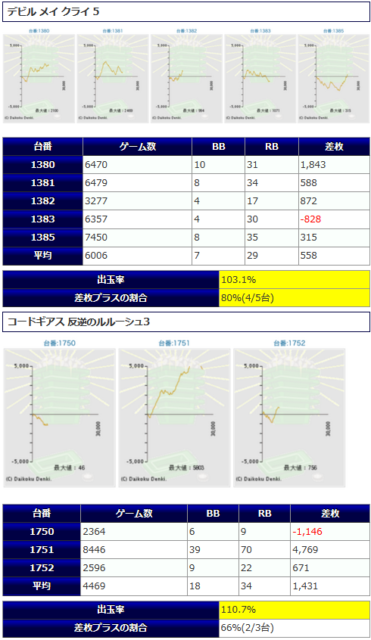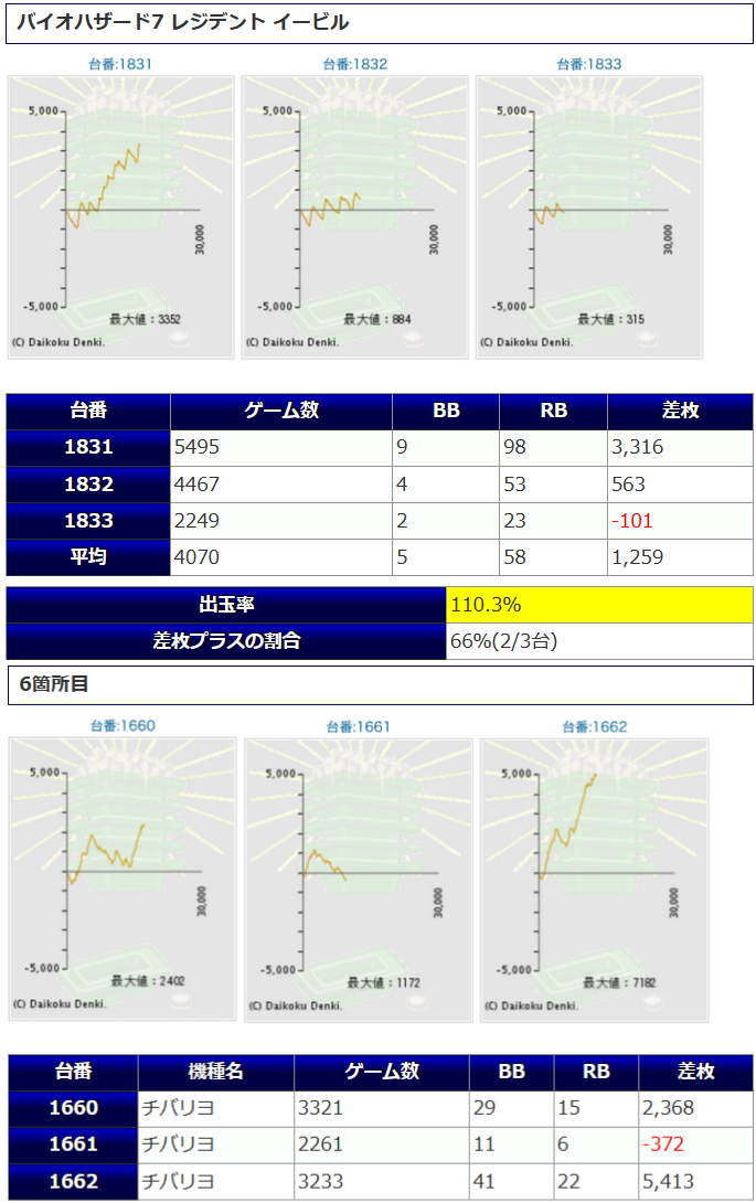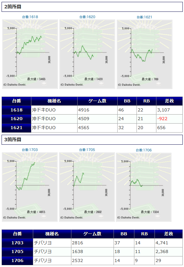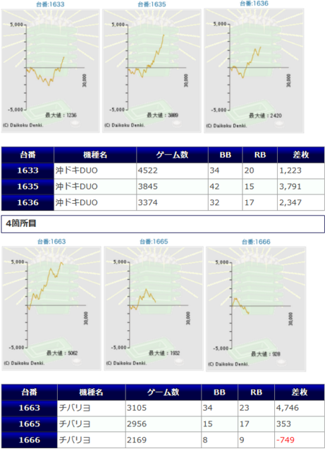 沖ドキDUOの並びは6台対象で全勝、それからチバリヨも6台対象で全勝と圧巻のパフォーマンスでしたね。