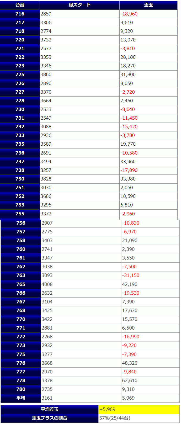 チバリヨの1685番台からは+7,822枚と、この辺りは同機種のポテンシャル以上の結果になっていましたし、荒波機種であるにも関わらず勝率も高く優秀な結果となりました。