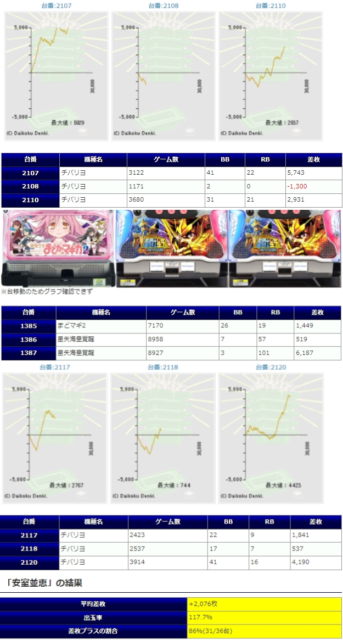 沖スロ系だけでなく、番長3や星矢、まどマギ、バジ絆2と広く好結果が見られ、全体の結果数値も高レベルなモノとなっており、投入量も等価営業である事を踏まえればそれなりに戦えるボリュームでもある事で☆5でよりと思います