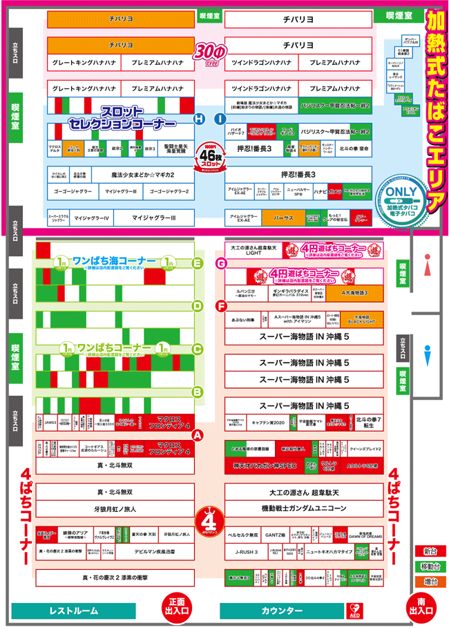 投入比率は21.74円スロット設置台数466台の同店において【10.7%の投入量(50台)】と公約もクリアとなります。