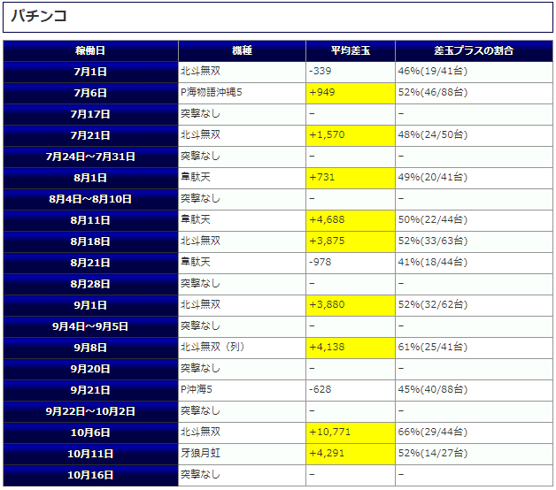 (通常営業日においてはどこのホールも基本回収なのでそれは評価には加えないでください)