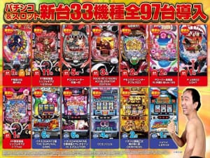 今回も半数が「沖スロ系」、それ以外からはジャグ、メインAT機、バラエティとバランスよく用意されていました。特に「チバリヨ」への投入が多く、依然としてコンコルド系列全体でチバリヨに力を入れている印象がありますね。