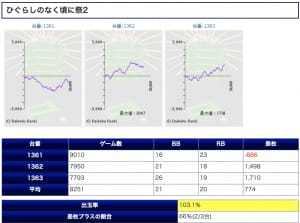 勝率3/3 平均差枚2390枚 平均5127G 出率115.5%