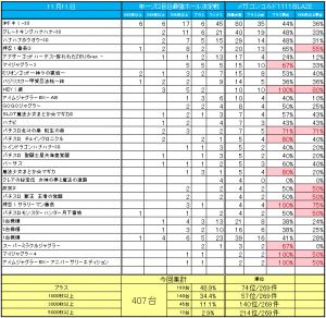 次は番長3かなと思います。13/20台がプラスで、11台が1000枚オーバーでした。