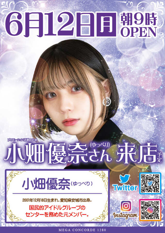 〇小畑優奈来店予定