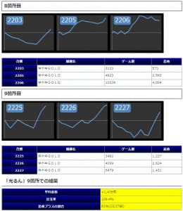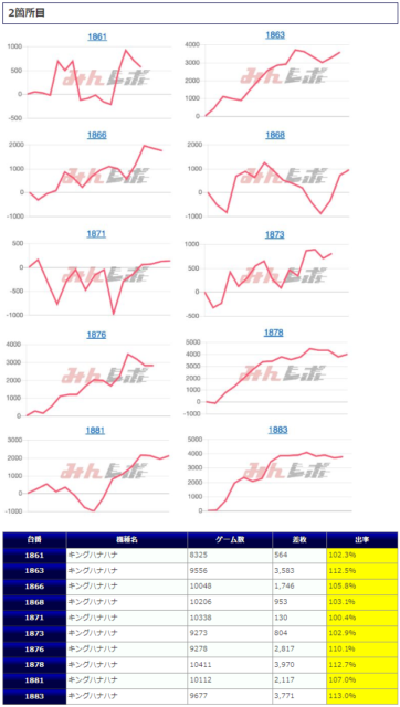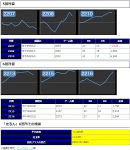 最終的な結果としては平均差枚+1,476枚、平均出率109.4%、勝率81%といった高水準な結果となりました。