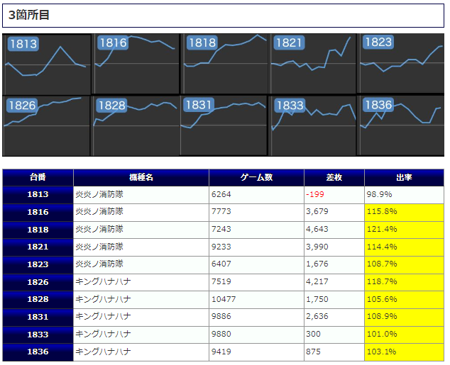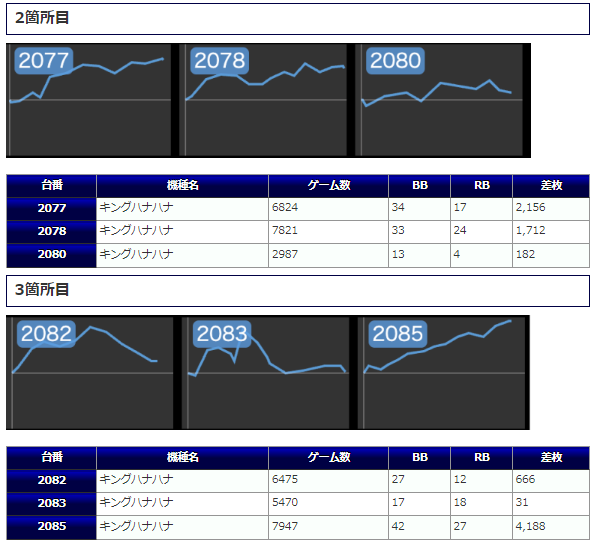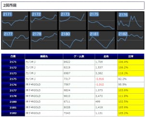 手応えを感じ、5,000~7,000回転といった打込を魅せている台も見られ、中には差枚+2,292枚といった目の惹く出玉を魅せている台も存在していた模様です。状況的には厳しそうではありますが、どうにか好調台から打つ根拠を見出してほしかったですね。