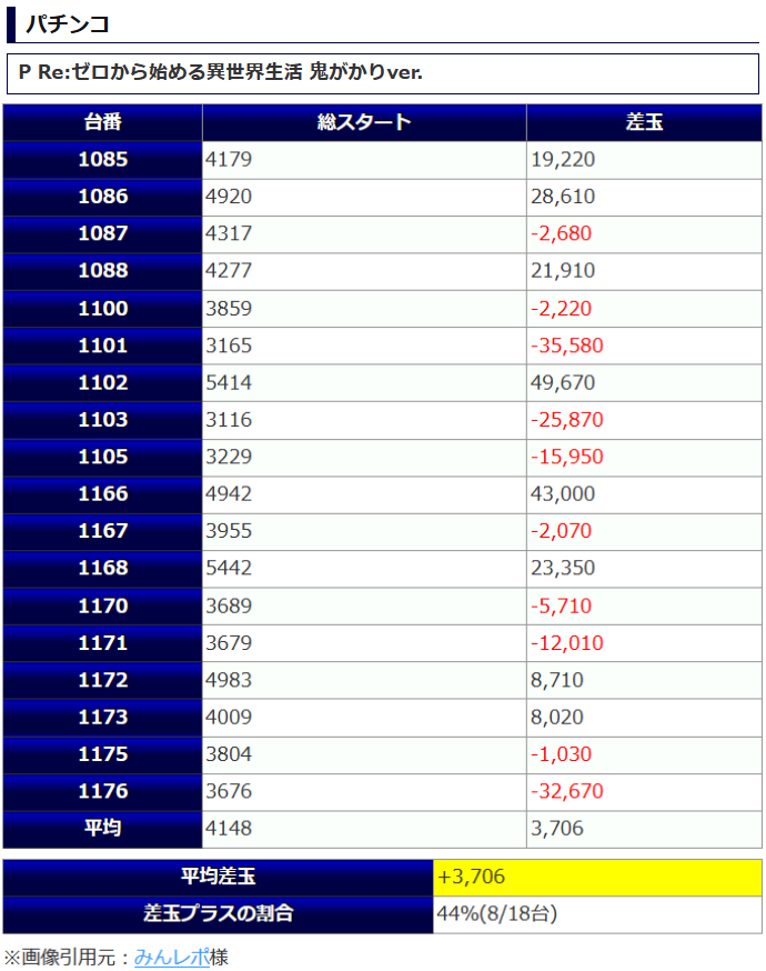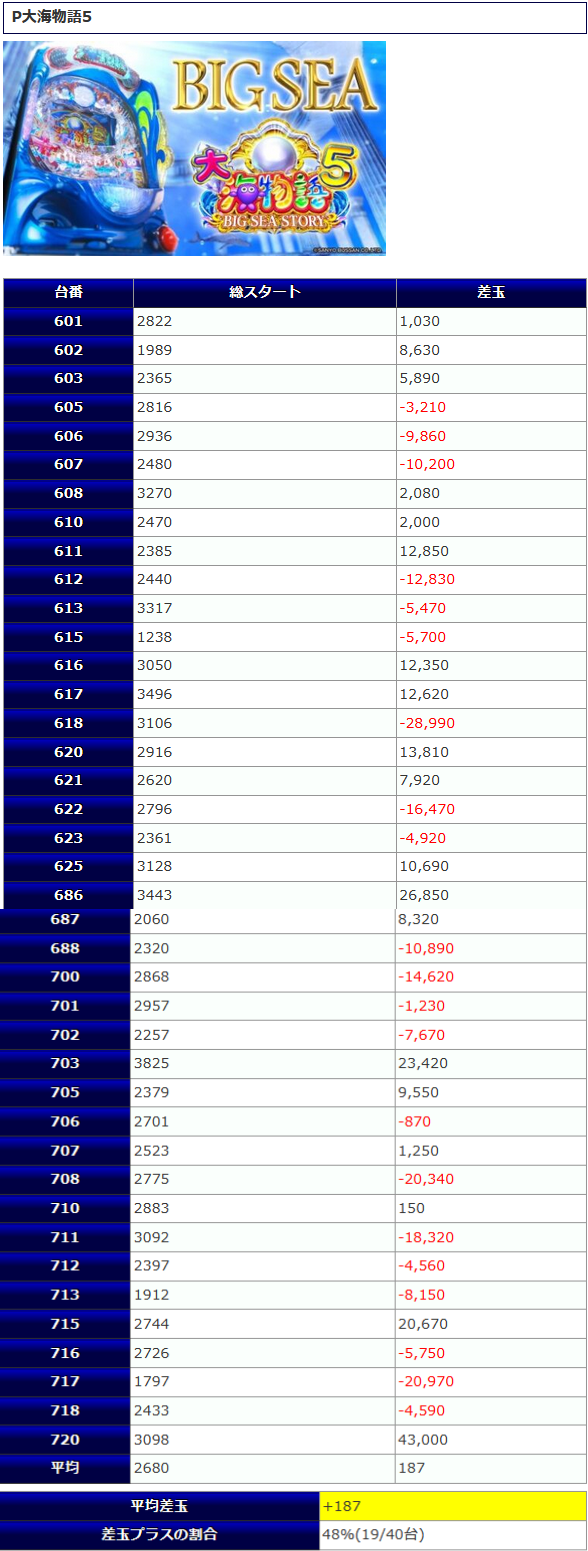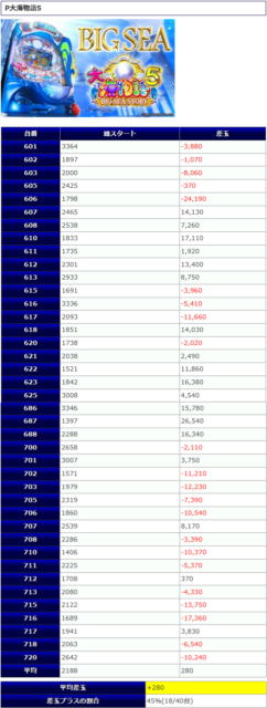 +26,540発、+17,110発、+16,380発といった大きな出玉を筆頭に、40台中、18台がプラスと高勝率に纏まりましたので、総差玉数は見事ユーザー側のプラスとなりました。