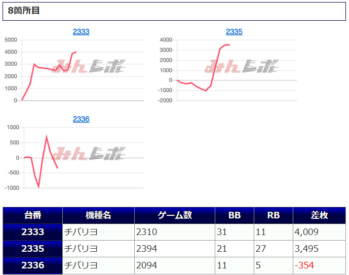 今回、展開悪くマイナスとなってしまった台は幾つか見受けられますが、投入量、平均差枚、出率、何れも好結果に纏まりました。