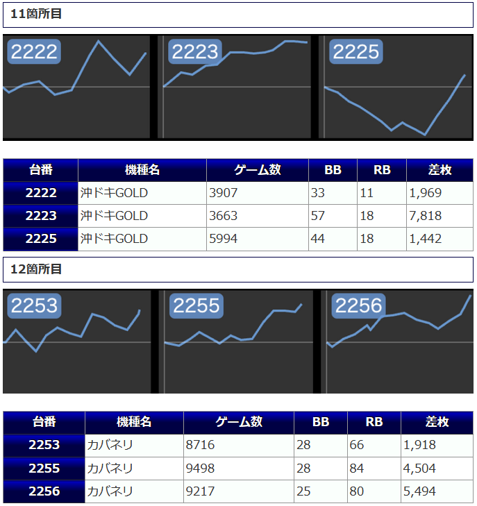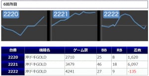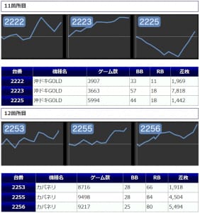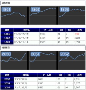 その他からも好結果が複数見受けられましたが若干数伸び悩んでしまったが故に稼働が付ききらなかったような台も見受けられましたので若干の勿体なさが感じられました。
