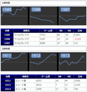 半数が伸び悩んでしまったものの、差枚を多く獲得できた台は稼働、ボーナス状況共に良好となっていますので仕掛けにある程度の信頼が保てるような印象です。