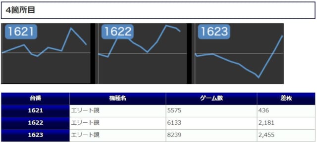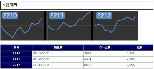その稼働の中、9台中8台がプラス差枚で着地しているので、ユーザーは手応えを感じながらの遊技だったことでしょう。