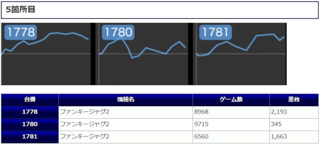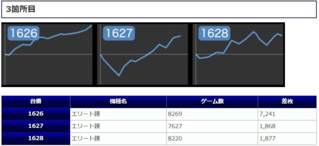 また稼働面から見ても、3台全台が5000G以上回っている箇所が8箇所もありましたので、それだけ粘る理由があったということでしょう。