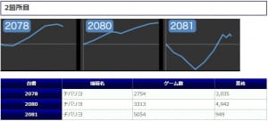 対象15台の平均スタート数が2818回とユーザーの粘りが見られましたので、盤面状況は悪くなったのだと思われます。