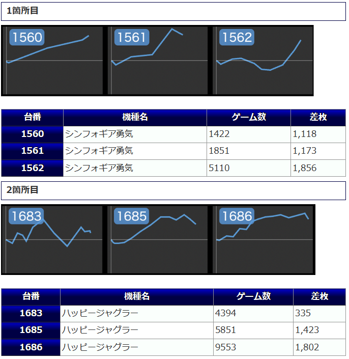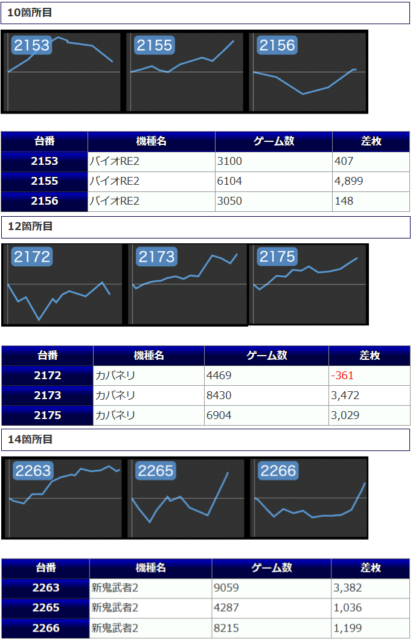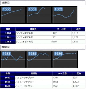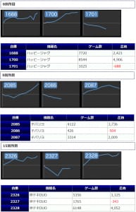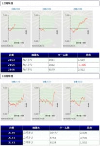 一方で大きなマイナスを記録する台もあったりと、中身が伴っていても展開次第では結果も変わってきてしまう事が見て取れますね。