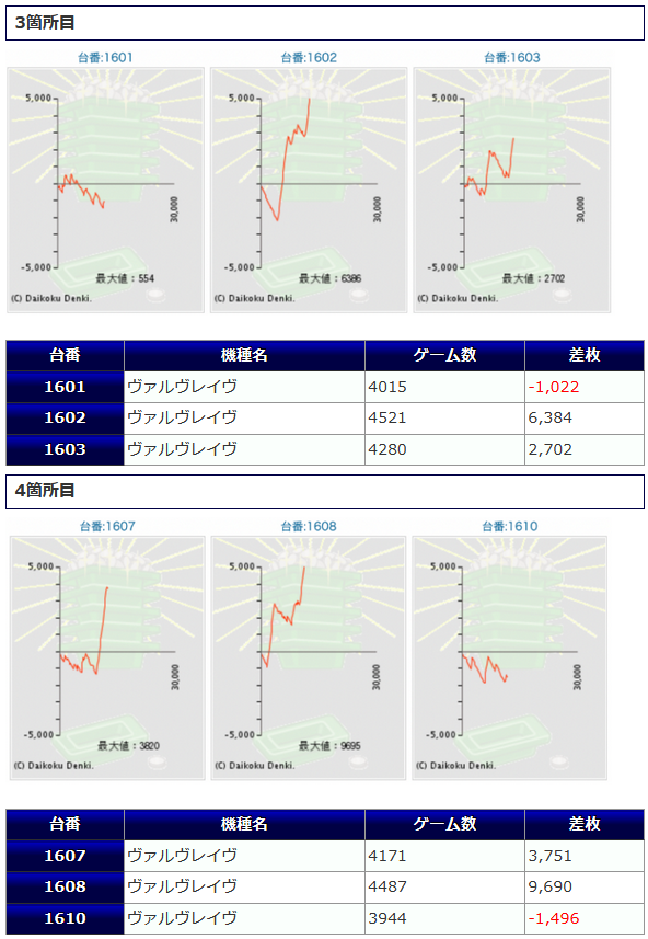 「チバリヨ」からは+4,771枚が炸裂。「沖ドキDUO」は6台中、5台がプラスと、定番沖スロ系も状況は良好だったようです。