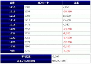 とはいえ、1台平均にすると-281発と僅かですので、プラ転の目も十分にあっただけに非常に惜しかったですね。