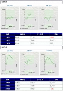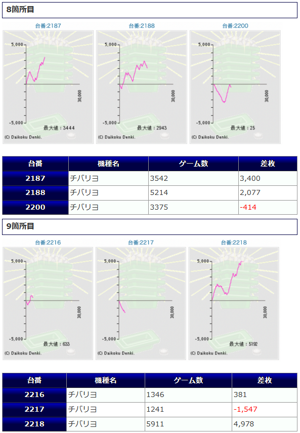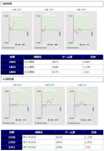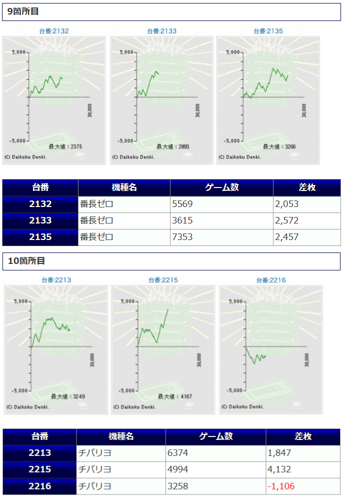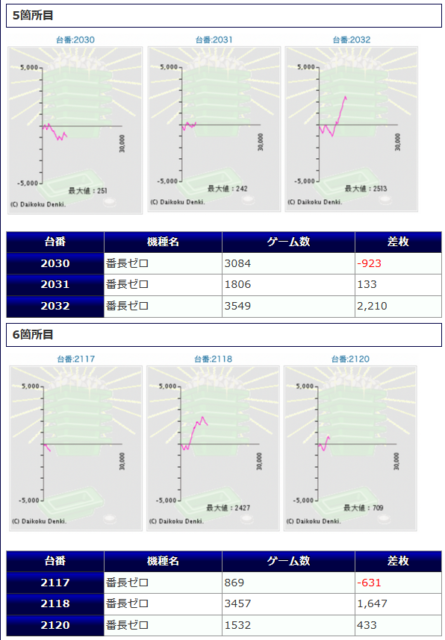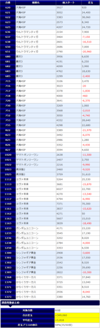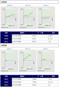 +34,970発、+34,320発、+31,390発と、3万発オーバーが3台見られ、15台中、6台がプラス着地に成功しています。