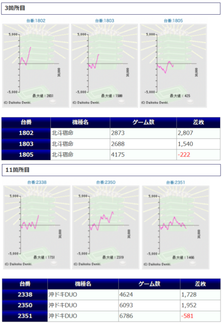 それから、若干稼働に余裕がありましたが、「番長ZERO」では2箇所6台の仕掛けで幾つかの纏まった出玉が獲得されていましたし「北斗宿命」では、3台の出率114.1%と、こちらも見逃せない状況となっていたようです。