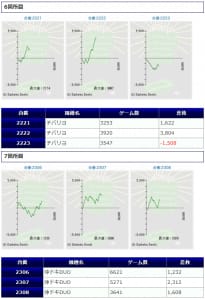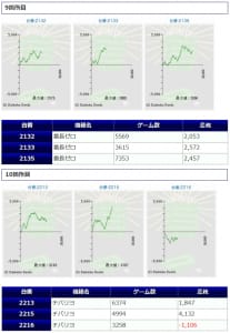 15台中、6台がプラス着地に成功。+39,820発、+20,770発、+12,270発等、万発オーバーの大きな出玉で健闘した台が複数見られています。