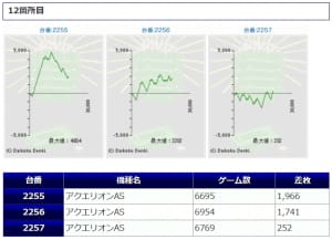 また。⑫箇所目「アクエリオンAS」こちらも+1,966枚を筆頭に3台並んでプラス着地となっていますので、こちらも見逃せない状況になっていたようです。
