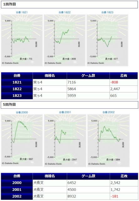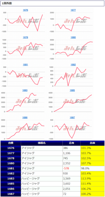 伸び悩んでしまった台も少なからず見受けられましたが、いずれの数値もまずまずの好結果に纏まり、大きな出玉も見られていますので、まずまず良好な仕上がりになったのではないでしょうか。