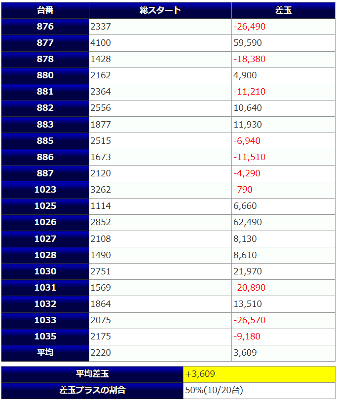 しかし、叩かれたマイナスが大きく、メリハリが激しい結果となりましたので、残念ながら総差玉数はユーザー側マイナスとなってしまいました。