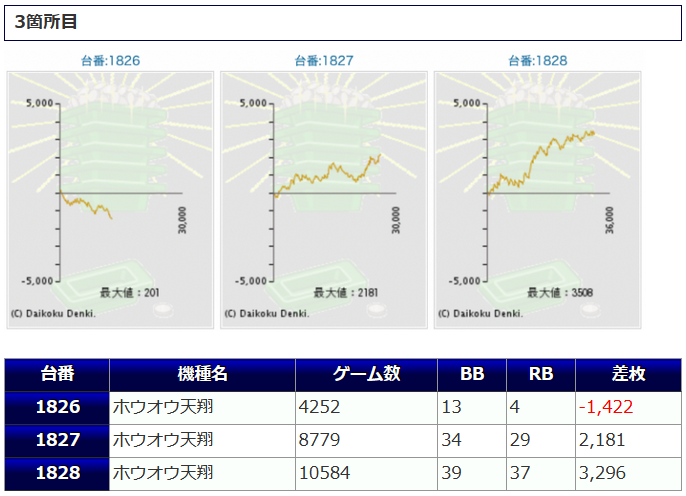 そういった事を察していたのか、隣の1827番台もしっかり回され、+2,000枚オーバーをマーク。残りのもう1台は4,000G以上追われていますので、半日以上は粘られていたようでしたが結果は伴わなかったようですので、3台並びでプラスにならなかったのが惜しかったですね。