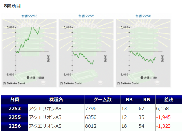 9台中、7台がプラスで着地していますし、マイナスとなってしまった台は稼働6,400G~7,000G程度追われて、状況の良さが感じられていたように思われるだけに結果が出なかったのがもどかしいものになっていますね。