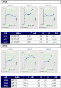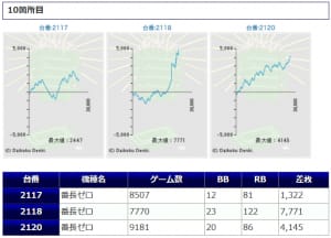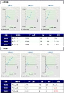 また、鳳凰天翔と番長ZEROはしっかり3台並んで纏まった差枚を獲得し勝率100%と、非常に優秀且つ安定感のある結果となっており、ユーザーも手応えを感じながら終始楽しめていたのではないでしょうか。