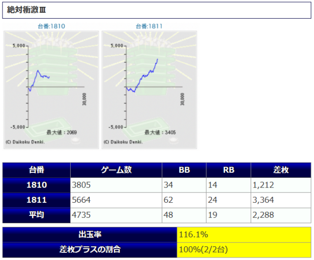 差枚プラスの割合:66%(2/3台)