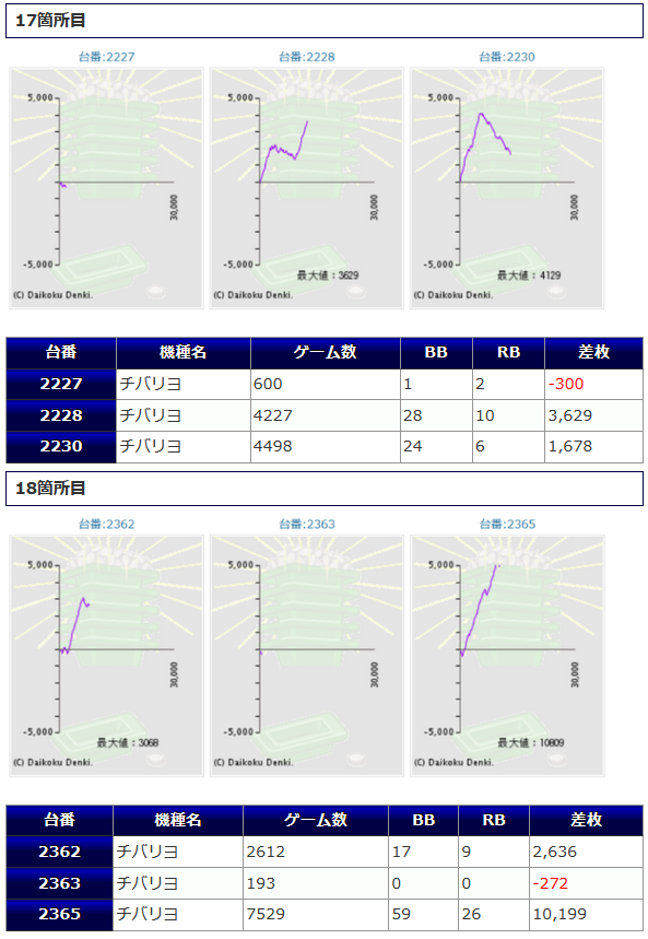 一方、同店お得意のチバリヨからは+10,199枚の大爆発が確認された他、+4,229枚等々も確認され、こちらでも盛り上がっていた様子。