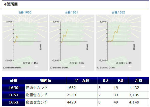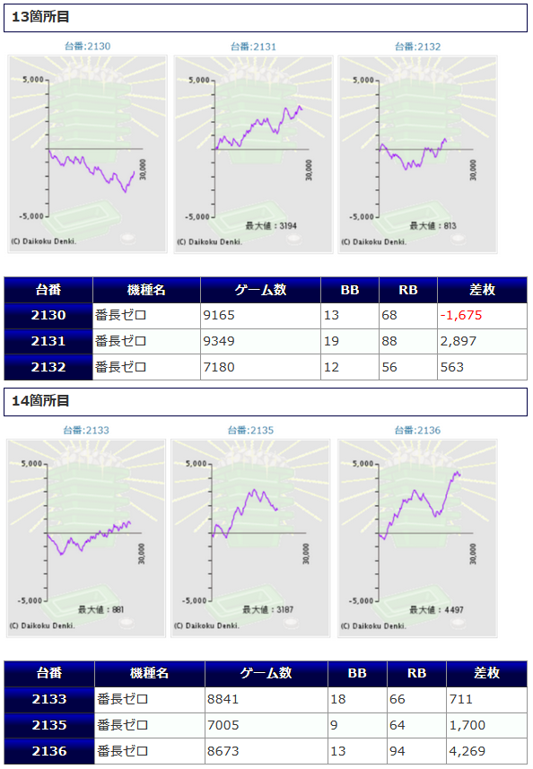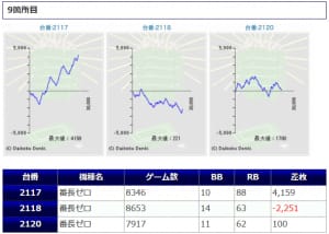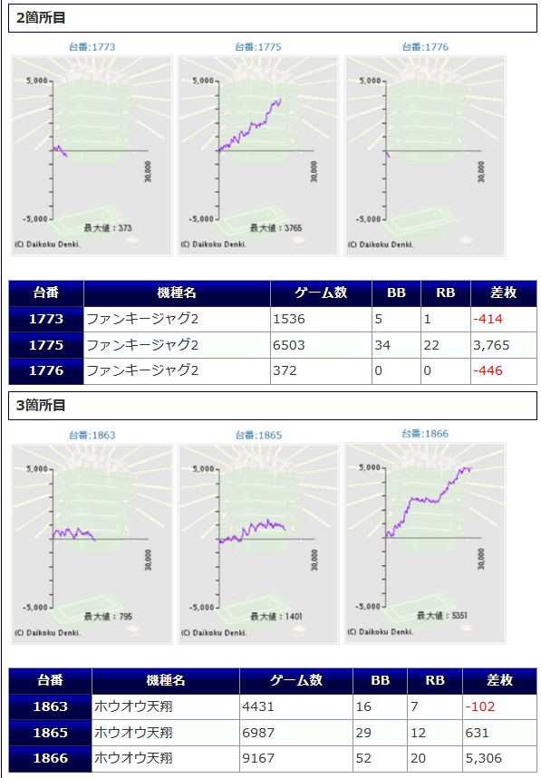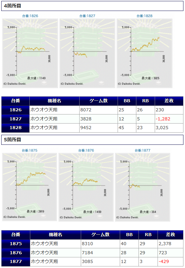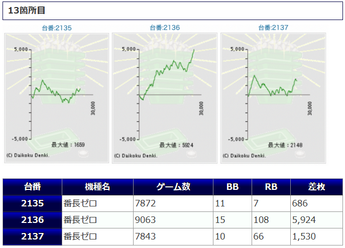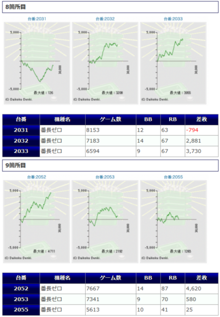 一方その他の機種からは、番長ZERO+4,258枚、+3,179枚、十字架5+3,489枚、ひぐらし祭2+3,130枚鳳凰天翔+3,025枚等、各箇所から纏まった差枚が確認され、こちらでも盛り上がりを魅せていたようです。