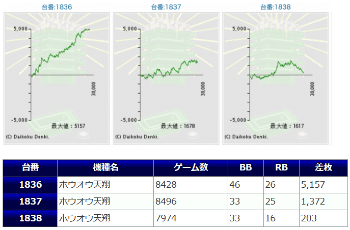 差枚プラスの割合:0%(0/3台)