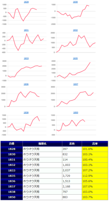 鳳凰天翔からも+5,306枚、ファンキー2から+3,765枚と、当日は30π、25π広い範囲で盛り上がりを披露する事となりました。