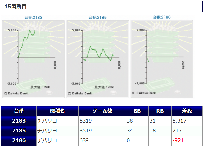 そのチバリヨから+5,698枚、+4,699枚、4,419枚と大き目な差枚が確認され、結果に貢献する事となりました。