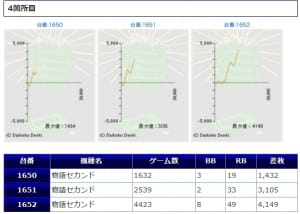 平均稼働3794G、平均差枚+578枚となっており、ユーザーが気付いていたかどうかは微妙なところですし、差枚も微妙で中途半端な結果となりましたね。