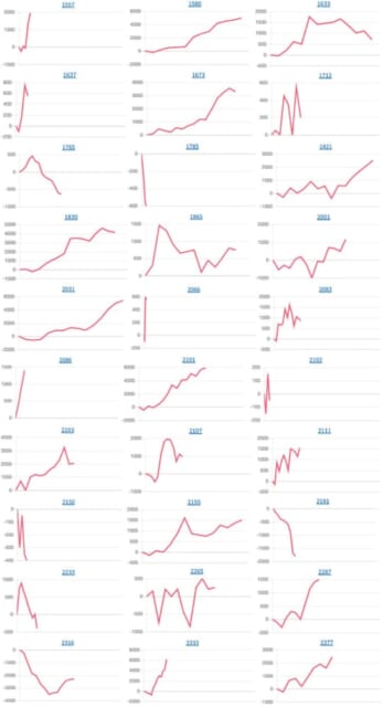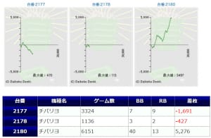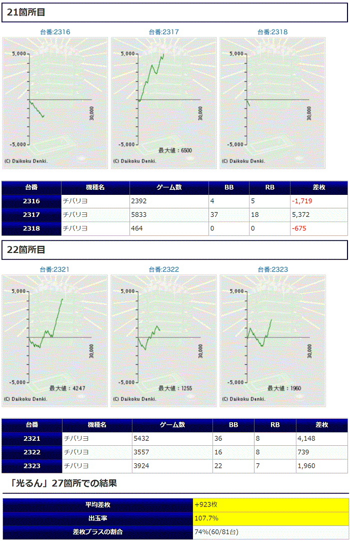 仕掛けの大半が「チバリヨ」からの仕掛けとなっており、2317番台から+5,372枚、2321番台から+4,148枚を筆頭にメリハリのある展開になっていたと思います。