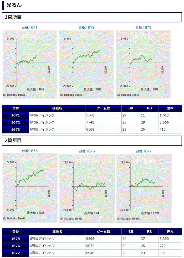 公約①での各列に1台以上の【設定⑥】と、公約②の1列は1/3以上が【設定⑥】で計30台の仕掛けがありました。