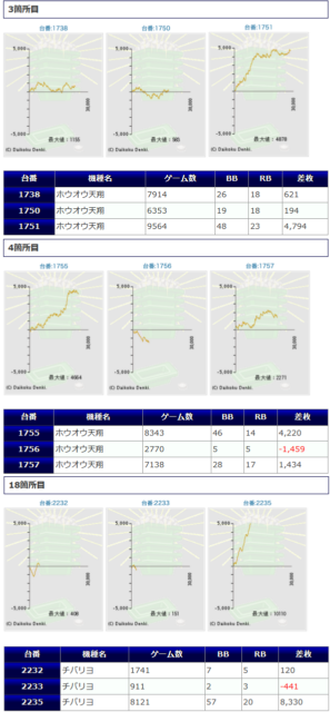 それ以外にも沖ドキ、チバリヨらしく3000~5000枚クラスの爆発が至る所から見られ、比較的優秀な結果であったと言えると思います。