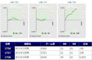 番長ゼロは2027番が高設定挙動となっていて、その隣の2台はかなり苦戦した様子でしたが、6000G以上粘っており、何かしらの示唆があったのかもしれません。