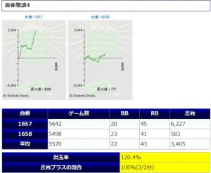 しっかり稼働もついてますし、グラフを見ても高設定挙動に見えますし、結果もスペック以上の出玉率となり、納得の結果でしたね。